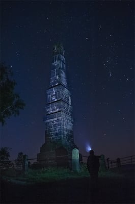 Es gibt kaum eine intensivere Erfahrung in der Landschaftsfotografie, als Nachts draußen zu sein. Wenn man auf einen tief Schwarzen Wald zuläuft dann beginnt es schon zu rumoren im Kopf... Was wenn Dir jetzt mitten im Busch eine Herde aufgeschreckter Wildschweine begegnet? Der Puls ist ohne Frage deutlich erhöht, der Adrenalinspiegel vermutlich auch. Dennoch ist die Anziehungskraft des Zieles immer ein Stückchen größer als die Angst vor Wildschweinen und der Respekt vor nächtlichen Begegnungen. So oft es geht, unternehme ich diese Touren daher zusammen mit meinem Vater - ob es im schlimmsten Fall gegen die Wildschweine hilft bleibt fraglich, aber es beruhigt ein wenig. Zu zweit hat man sich auch immer was zu erzählen und wird so mit Sicherheit auch eher von den Tieren wahrgenommen. Das Licht der Stirnlampe leuchtet uns den Weg, ein schmaler Lichttunnel dem die Augen folgen. Dreht man mal den Kopf in die Richtung abseits der Wege kommt es durchaus auch mal vor, dass einen da zwei Augen anleuchten die in den häufigsten Fällen aber zum Glück einem eher scheuen Fuchs gehören.