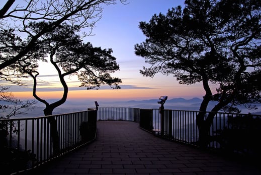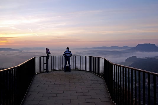 Nicht allen ist es vergönnt die Sächsische Schweiz in den Morgenstunden zu erleben. So wie hier auf diesem Panorama wird ein Großteil der Besucher bei Tageslicht die Aussicht von der Plattform genossen haben.