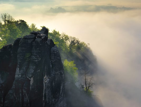 Im Februar 2008 hatte ich mit der Pentax K10D soeben meine erste digitale Spiegelreflexkamera erworben, da wurde das zeitige Aufstehen schon mit einem phänomenalen Sonnenaufgang über der Bastei belohnt.