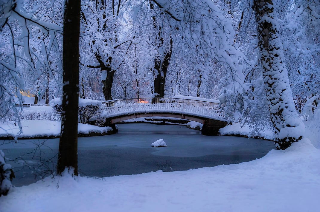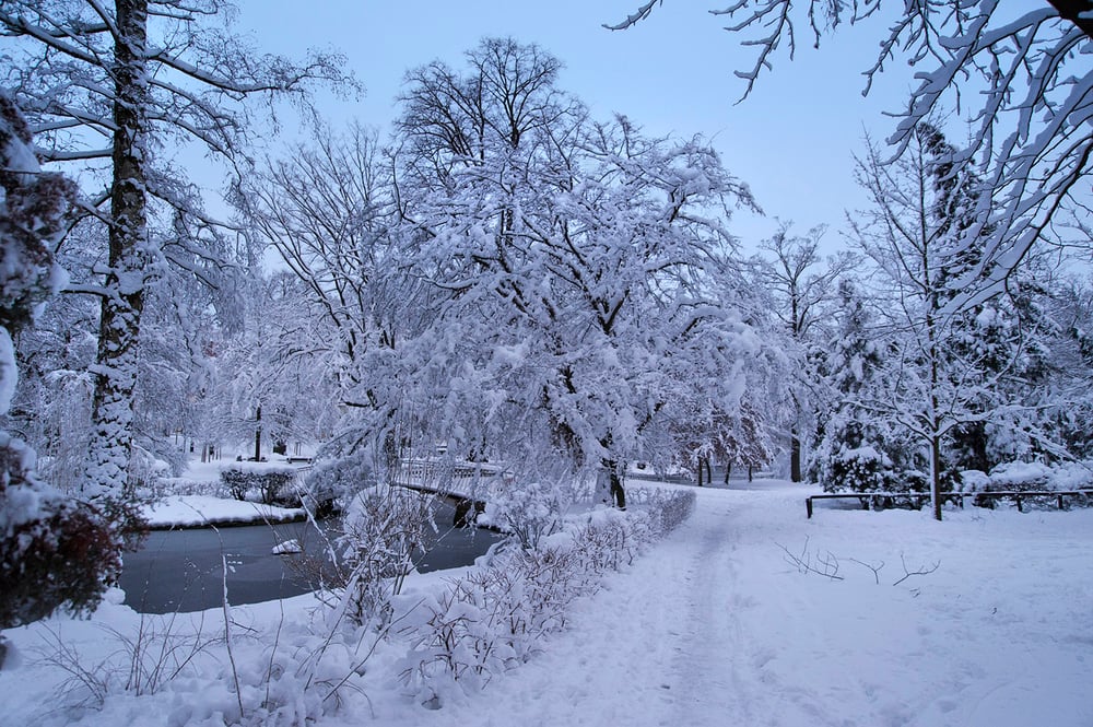 Dick verschneit zeigt sich der Arthur-Richter-Park in Neustadt / Sachsen am zeitigen Morgen des 11.01.2019. Nikon D700 & Sigma Art 24-105mm / ISO 1000 / 24mm / f/4.0 / 1/20sek.