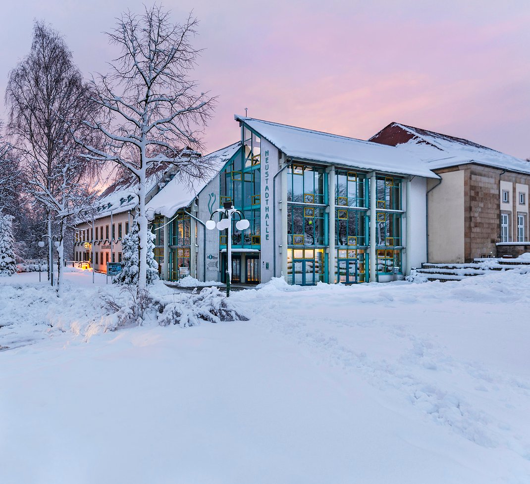 Der Himmel zeigte sich in wunderschönen Pastellfarben. Bei dieser Aufnahme am Schützenhaus und der Neustadthalle entschied ich mich für eine Panoramaaufnahme aus 3 Hochkantaufnahmen.