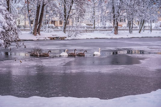 Sehr schön ist es auch immer wieder zu sehen, dass alle Mitglieder der Schwanenfamilie bei bester Gesundheit sind. Auf einer kleinen noch vom Eis befreiten Fläche zogen sie ihre Kreise.
